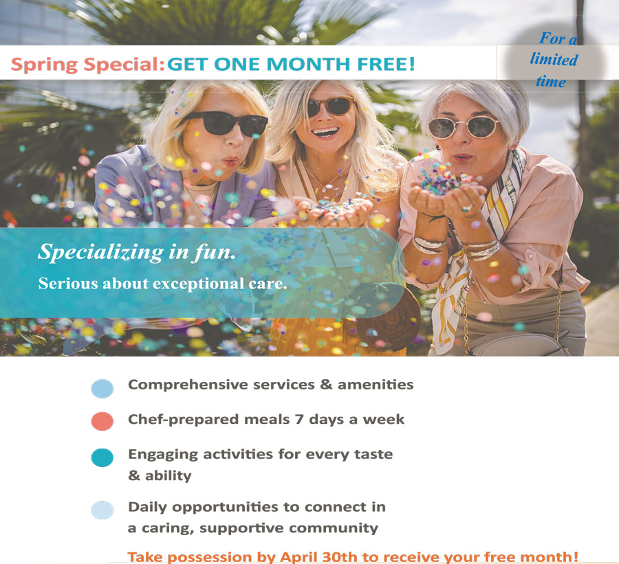 Take possession by April 30th to receive your free month!